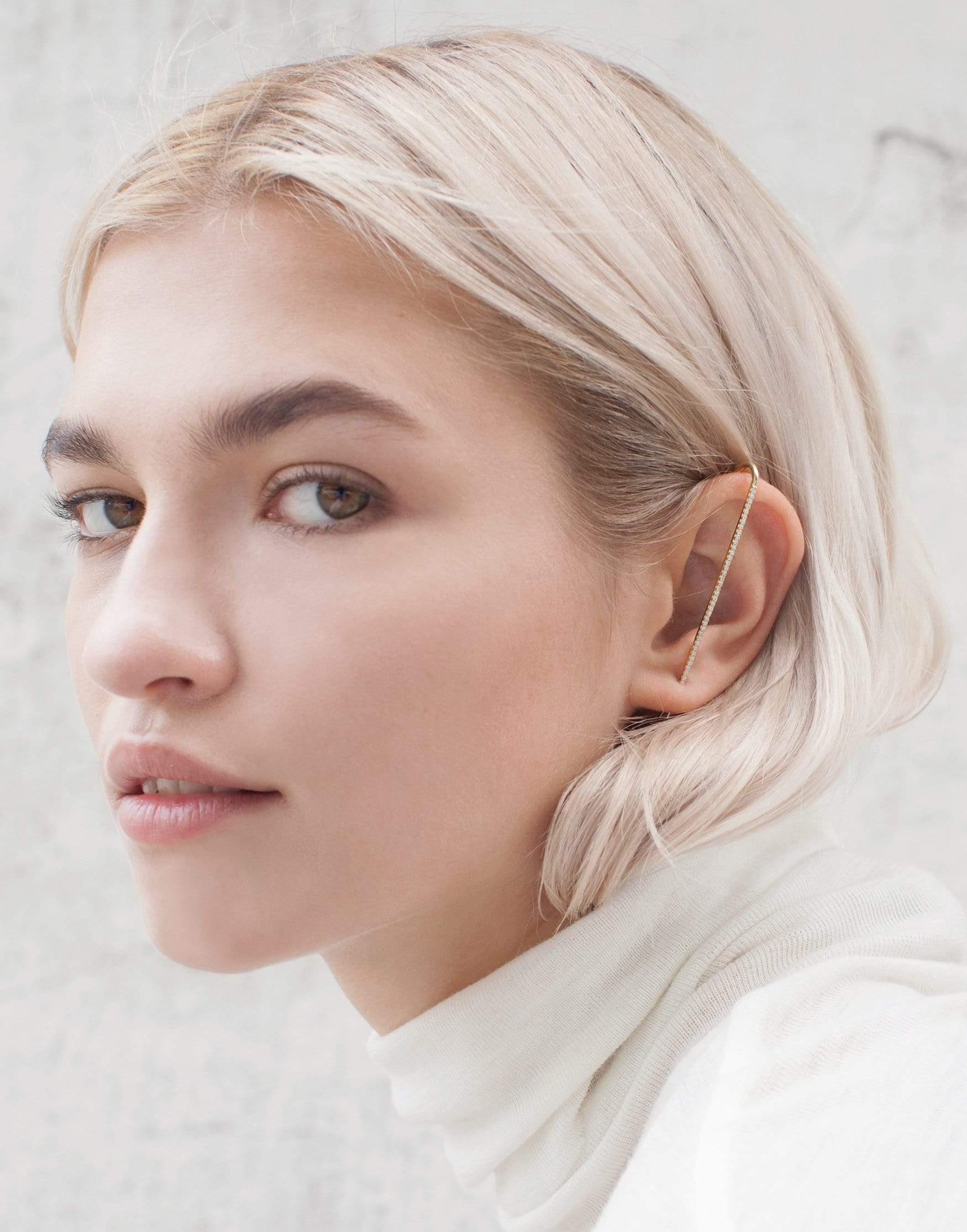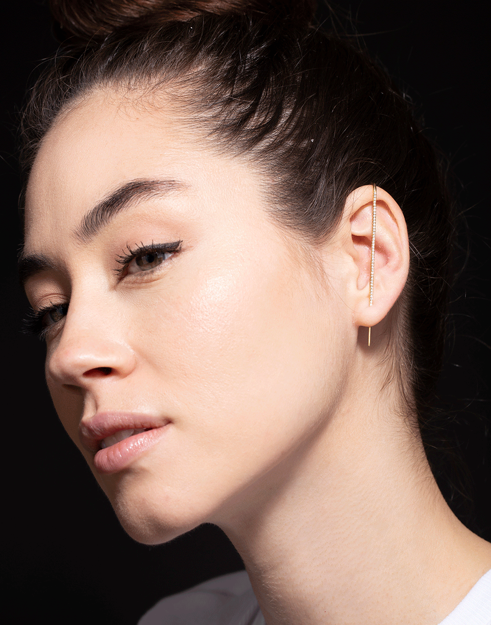 KATKIM diamond ear pin set in 18k yellow gold. For pierced ears.