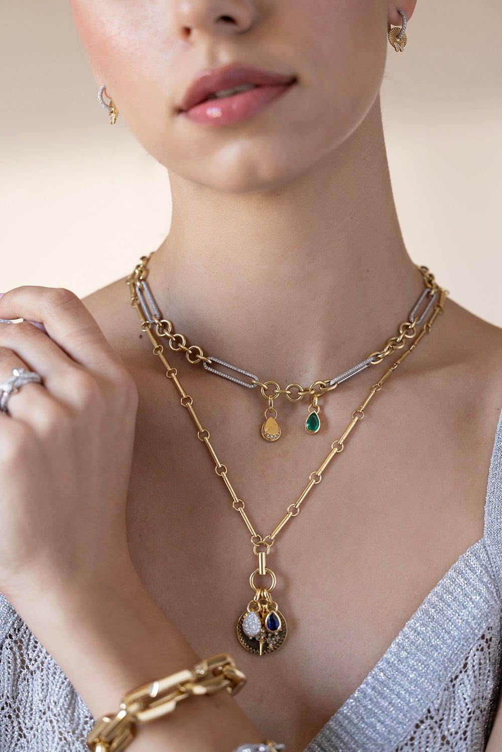 Element clock weight chain necklace in 18k yellow gold from Foundrae.