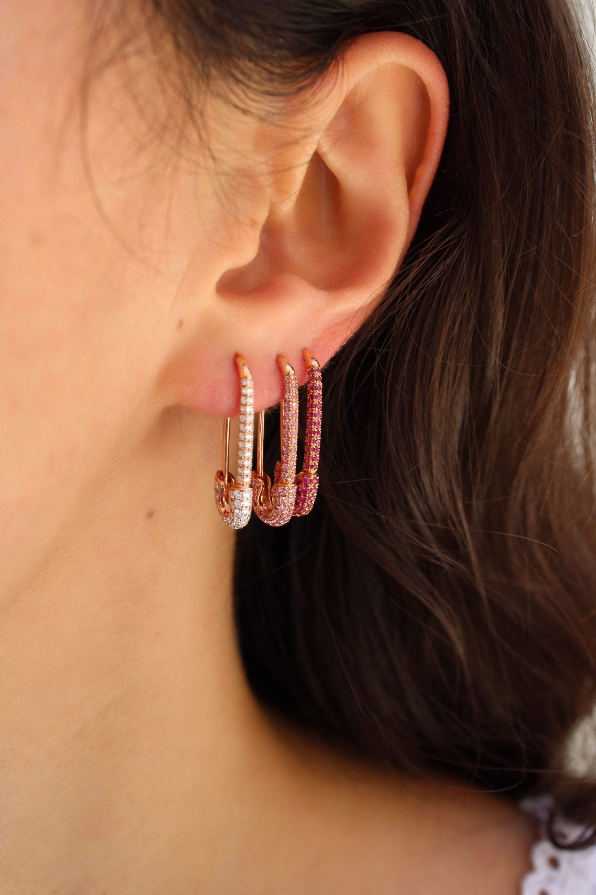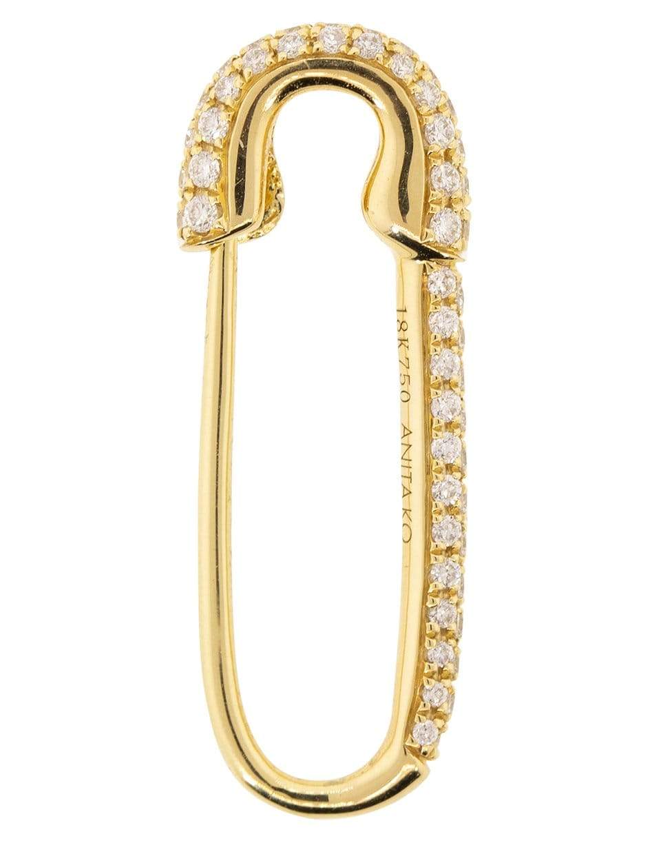 Single Anita ko left safety pin earring with diamonds set in 18k yellow gold. For pierced ears.