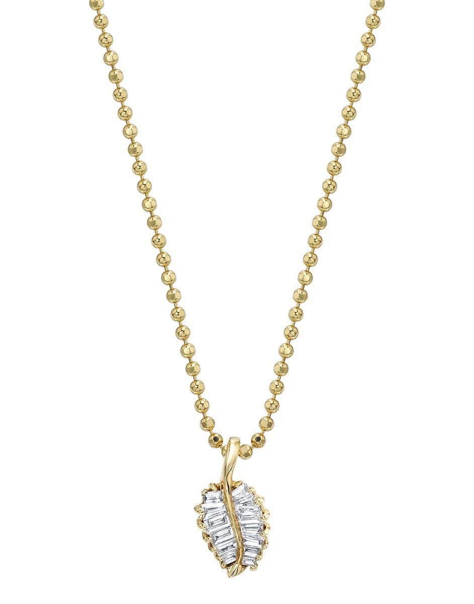 Anita Ko palm leaf necklace with baguette diamonds. 18" length and 10mm width with lobster claw closure.