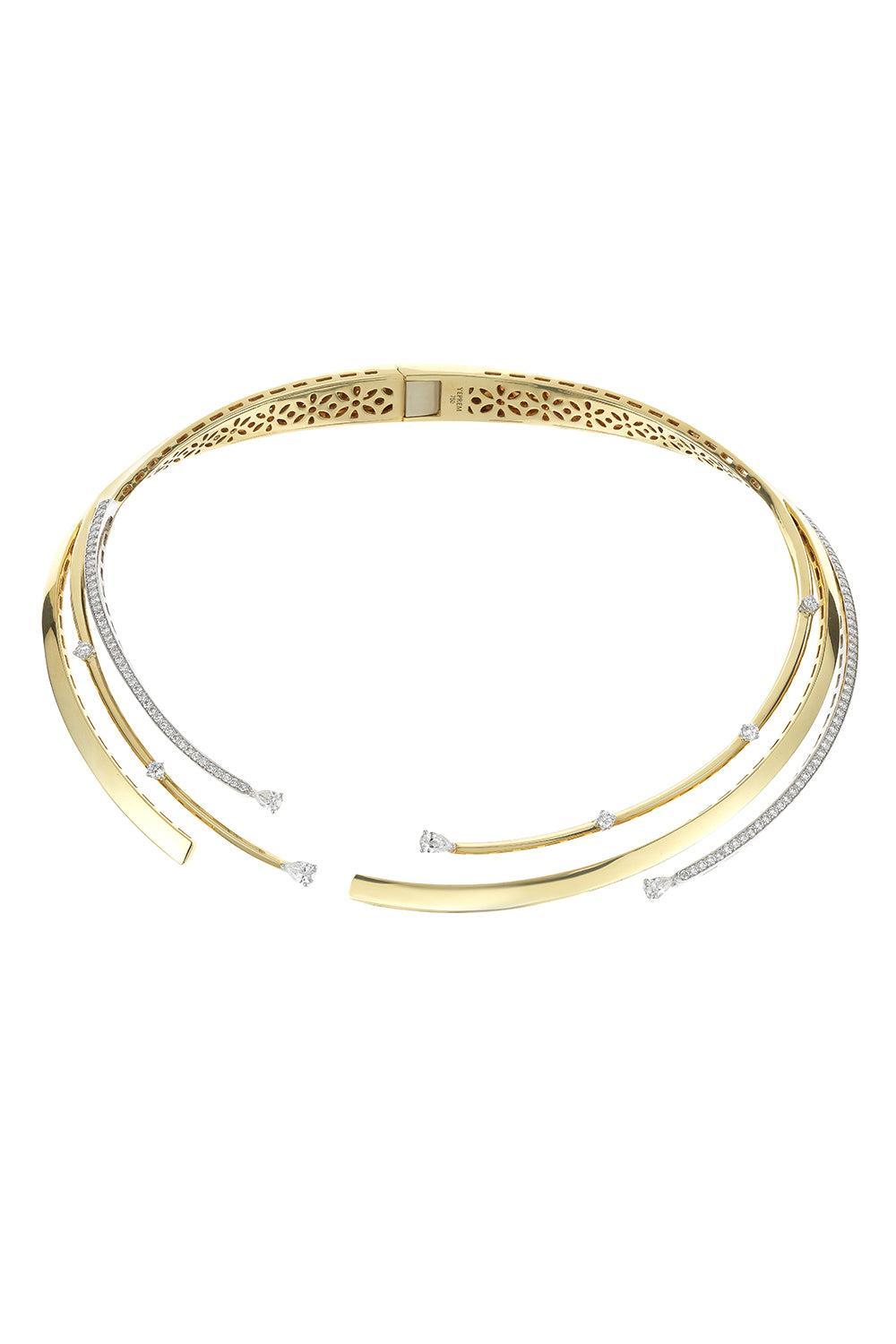 Yeprem diamond round pear golden strada statement collar necklace in yellow gold.