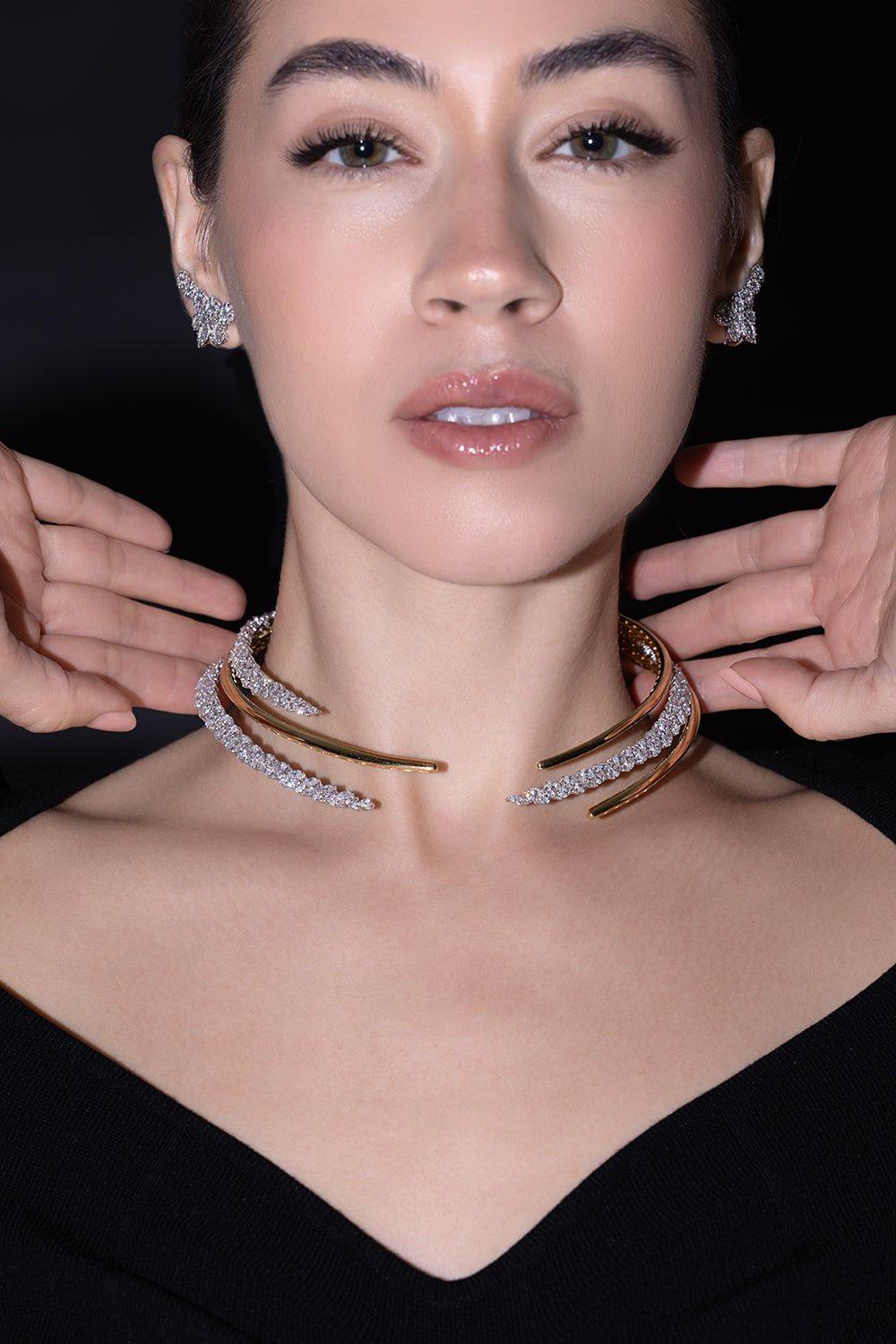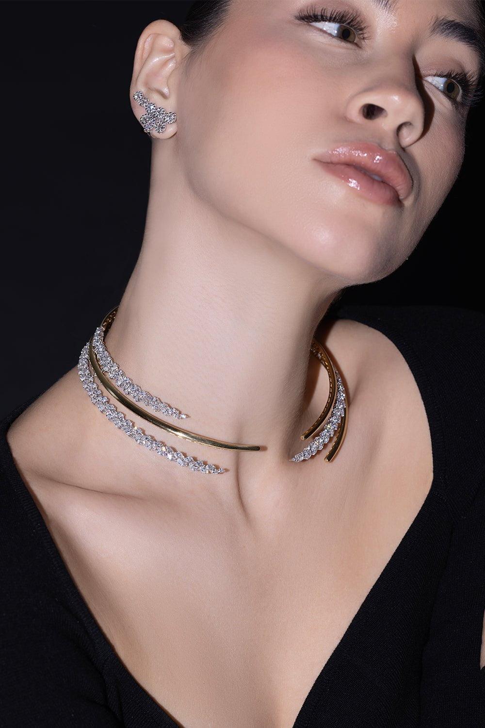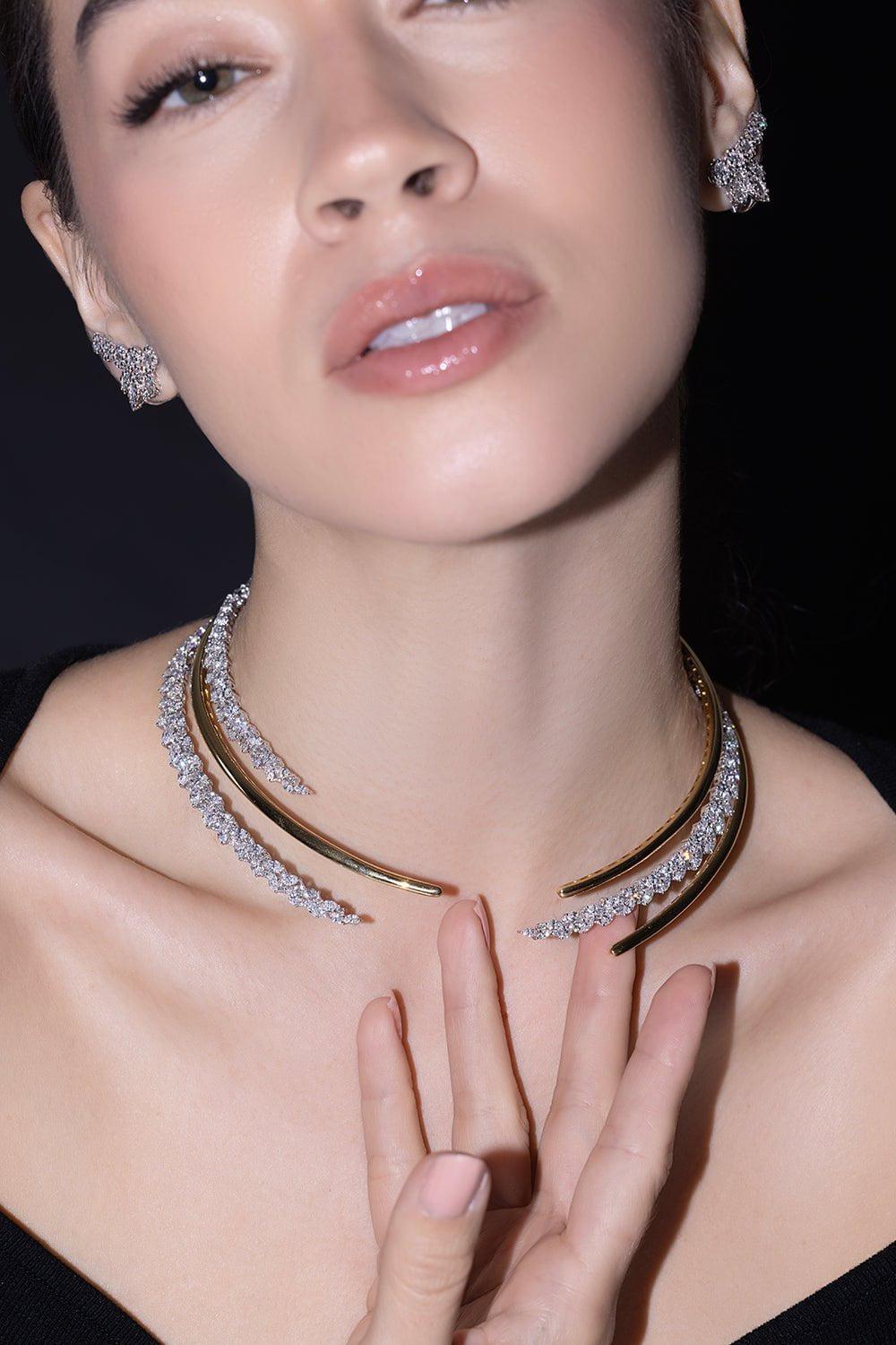 Yeprem golden marquise diamond collar in yellow gold.