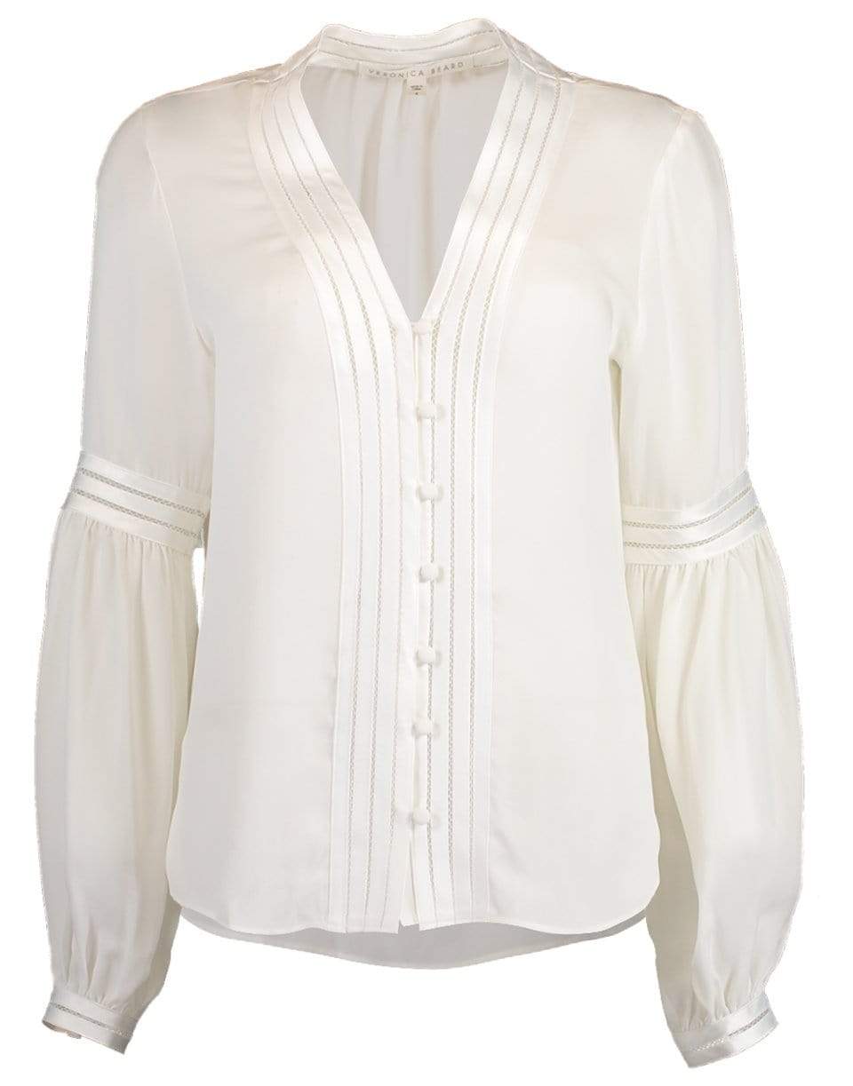 Ivory Yumi Blouse from Veronica Beard featuring a relaxed fit with a V-neck, long sleeves, and button front.