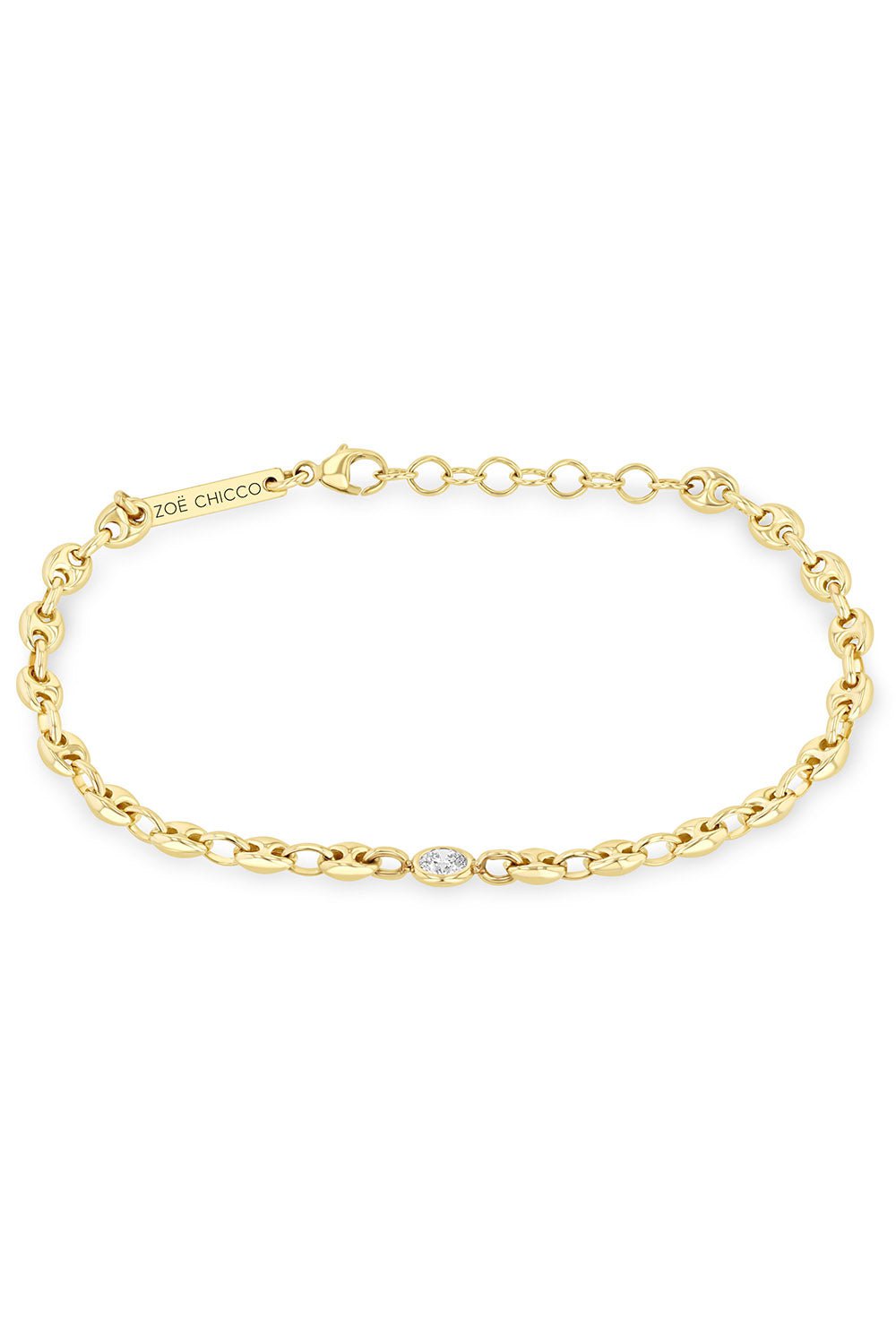 Zoe Chicco small puffed mariner chain bracelet in yellow gold.